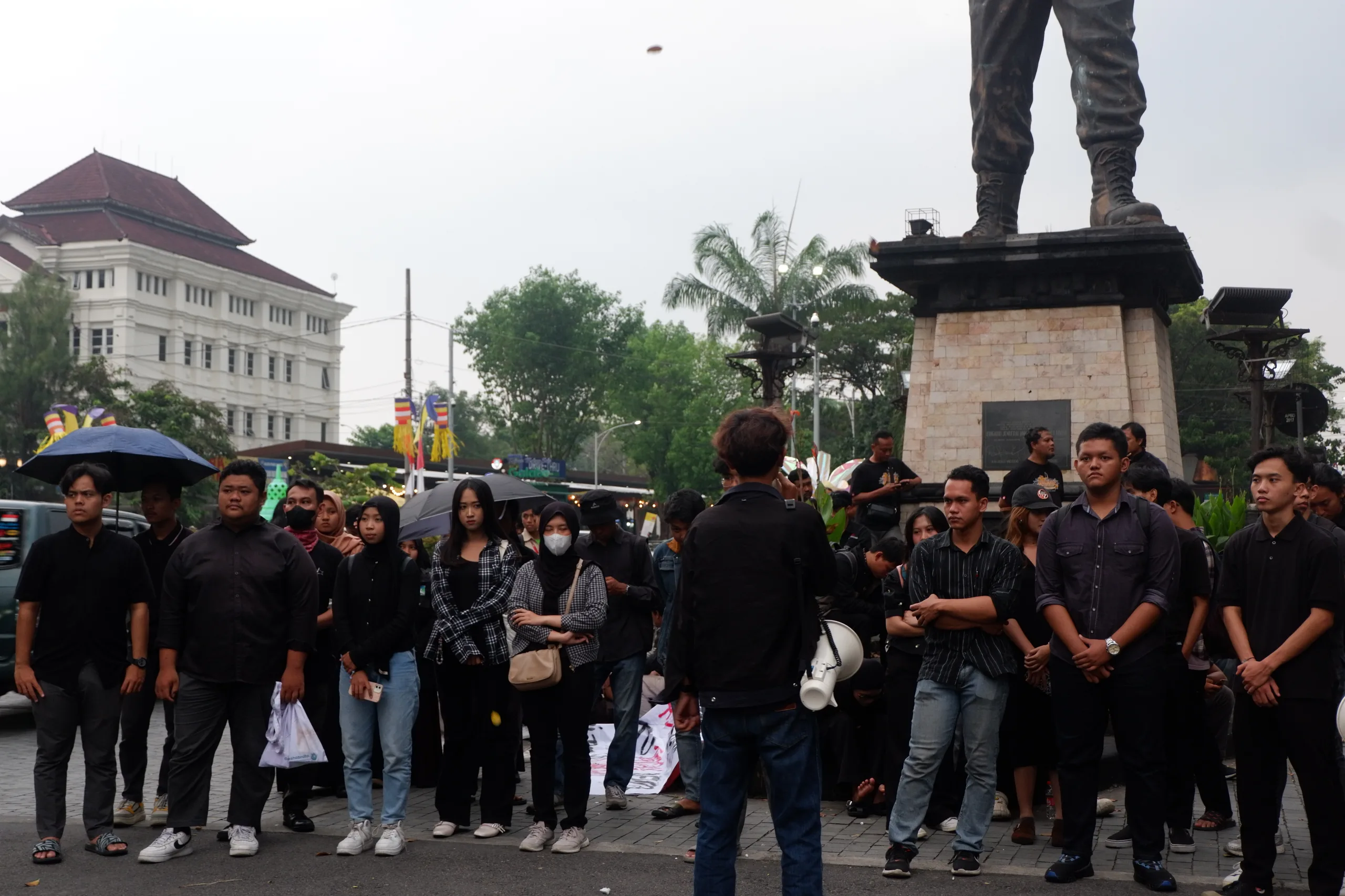Satu per satu muda-mudi berpakaian hitam-hitam mengendarai motor menepi ke bahu jalan sekitar Gladak pada pukul 16.46. Sejumlah dari mereka menenteng salon dan mikrofon, payung hitam, spanduk, dan membawanya persis ke bawah monumen Brigadir Jenderal Anumerta (Brigjen Anm.) Ignatius Slamet Riyadi.