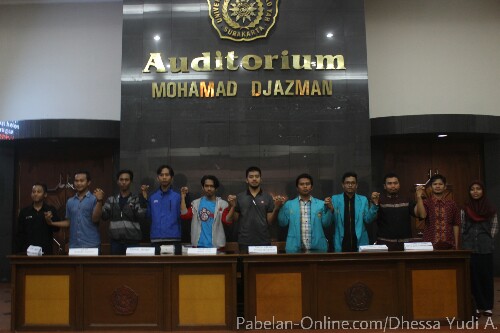 UMS, Pabelan-Online.com – Awalnya deklarasi damai berlangsung di taman Fakultas Keguruan dan Ilmu Pendidikan (FKIP), namun hujan lebat tiba-tiba mengguyur yang menyebabkan tempat harus diganti, Senin (3/4/2017). Setelah berdiskusi, Komisi Pemilihan Umum Mahasiswa (KPUM), Panitia Pengawas Pemilu (Panwaslu), dan beberapa kader partai menyepakati tempat deklarasi menjadi di depan Auditorium Moh. Djazman agar mahasiswa lainnya bisa berpartisipasi.