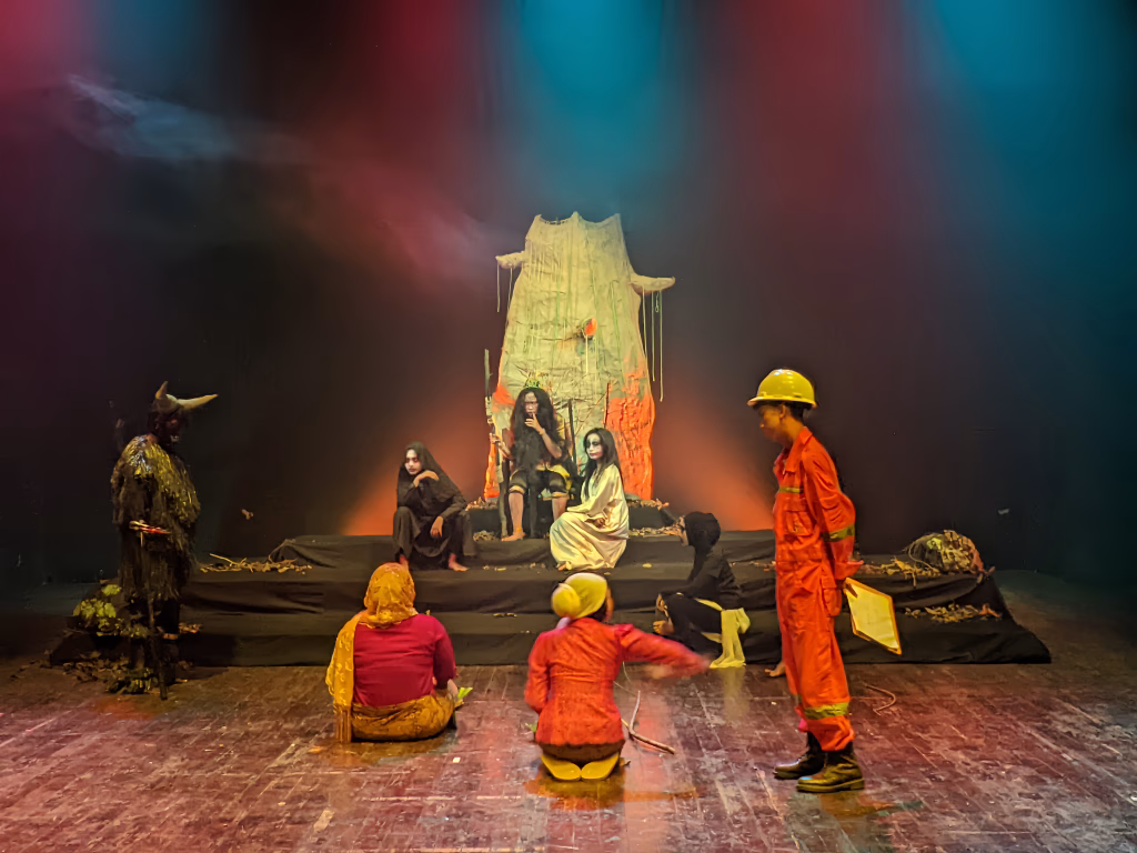 Pemimpin dan para dedemit murka akibat perbuatan manusia yang menebangi pohon-pohon. Padahal, pohon-pohon tersebut adalah sebagai tempat tinggal para dhemit. (11/11) Foto: Pabelan Online/Aulia Freyaniti Rengganis
