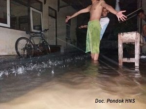UMS, Pabelan-Online.com – Kondisi Pondok Hajjah Nuriyah Shabran (HNS) Timur berstatus darurat banjir. Sejak April hingga Juni 2016, pondok tersebut telah empat kali mengalami musibah