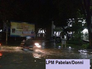 UMS, Pabelan-Online.com – Pukul 22.00 malam banjir masih merendam kawasan kampus 1 Universitas Muhammadiyah Surakarta (UMS). Rendaman banjir diperkirakan mulai naik lagi perlahan-lahan. Diutarakan oleh