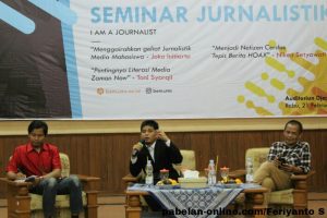 UMS, Pabelan-Online.com – Pemilihan tema “I am A Journalist” dapat menggambarkan materi yang disampaikan oleh Joko Intarto pada Rabu, (21/2/2018). Mengangkat judul “Menggairahkan Geliat Jurnalistik