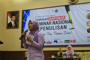 Reporter: Mydia Inggit UMS-Pabelan-online.com Lembaga Pers Mahasiswa Figur gelar seminar nasional bertajuk “Goresan Cinta Penakluk Dunia” bersama Tere Liye penulis buku populer “Hafalan Surat Delisa”,
