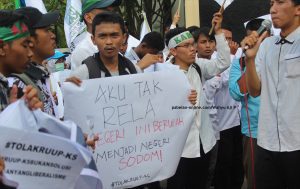 UMS, Pabelan-online.com — Demonstrasi berupa penolakan terhadap RUU P-KS digelar oleh sekelompok mahasiswa yang tergabung dalam Aliansi Mahasiswa Garda Pembela Pancasila di depan gedung DPRD
