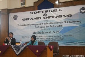 UMS, Pabelan-Online.com – Himpunan Mahasiswa Program Studi (HMP) Pendidikan Matematika adakan pembelajaran tentang softskill guru agar menjadi profesional dan berkarakter di acara Grand Opening (GO),