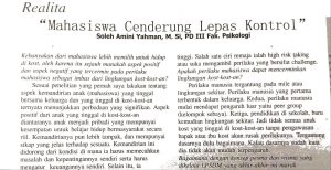 (Tulisan ini pernah dimuat di Pabelan Pos Edisi 56/ September 2002 dalam rubrik Realita berjudul “Mahasiswa Cenderung Lepas Kontrol”, ditulis oleh Soleh Amini Yahman dan
