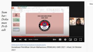 UMS, pabelan-online.com – Komisi Pemilihan Umum Mahasiswa (KPUM) Universitas Muhammadiyah Surakarta (UMS) adakan sosialisasi Pemilihan Umum Mahasiswa (Pemilwa) 2021 pada Minggu, 24 Oktober 2021. Acara
