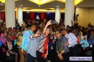 UMS, Pabelan-Online.com – Presenter Program Mata Najwa, Najwa Shihab dan penulis buku Mantra Layar Kaca, Fenty Effendi hadir dalam acara Meet and Greet di Aula