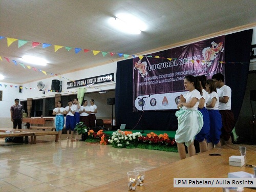 UMS, Pabelan–Online.Com – Kantor Urusan Internasional Universitas Muhammadiyah Surakarta (KUI UMS) dan peserta mengikuti Acara Cultural Night. Kegiatan tersebut masih dalam satu rangkaian Acara Summer Course 2016 yang bertepatan di Gedung Serbaguna Pesantren Mahasiswa (Pesma) KH. Mas Mansyur UMS pada Sabtu (13/8/2016).